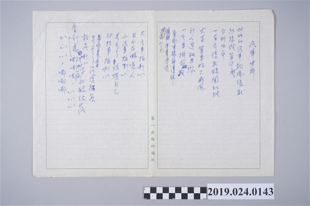 2019.024.0143 柯旗化詩作〈汽車世界〉手稿
