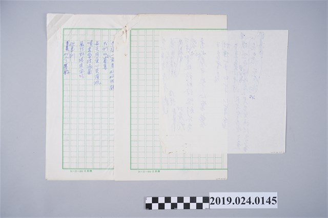 1.柯旗化中文詩作〈芋心番薯〉手稿,署名明哲(筆名),並註明第一出版社住址、本名柯旗化,內容描寫枉負心血的無奈,共2張。2.柯旗化於1982年完成最後一本英文教科書後,便一心轉向投入宣揚台灣意識的文化事業,包括編寫《台灣文化圖書目錄》與創辦《台灣文化》季刊之外,也積極撰寫詩作、社論投稿到台、日等報章雜誌,多數投稿在《台灣文藝》雜誌雙月刊、《笠》詩刊、《民眾日報》天聲人語專欄等等,此時期的柯旗化企圖跳脫白色恐怖冤獄的陰影,反而更無畏、積極地為自己的政治理念發聲,另外,柯旗化從創作詩開始便有將其作品轉譯成台語、日語、英語的習慣,於文章的寫作也是如此,因此可以發現因為語言版本的關係也有一稿多投得情況。本捐贈案文物囊括柯旗化生前最完整的親筆手稿(複寫稿),十分珍貴,其中又以未刊登或未註明投稿的手稿為最多,共收藏有146件(包含複寫稿)、其次是柯旗化投稿於《台灣文藝》季刊的作品42件,以及《民眾日報》天聲人語專欄刊登的社論32件,其餘數件刊登於《笠》詩刊、《台灣詩季刊》、《文學界》等等。