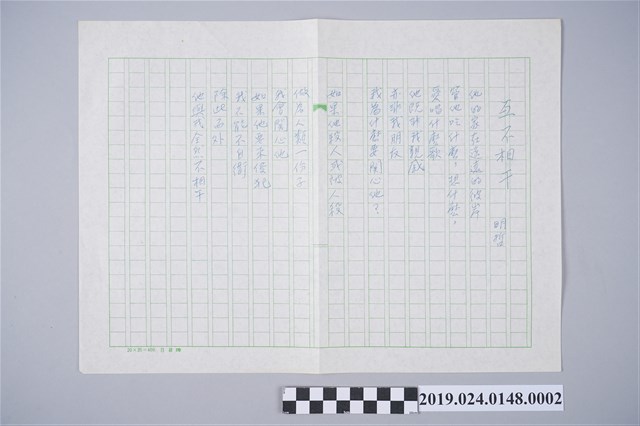 2019.024.0148.0002 柯旗化詩作〈互不相干〉複寫稿