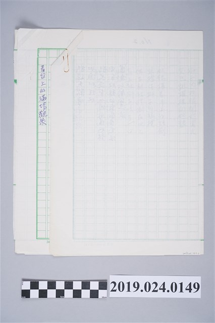 1.柯旗化中文詩作〈人獸決鬥〉手稿,無其他標註,共一張半的稿紙內容。2.柯旗化於1982年完成最後一本英文教科書後,便一心轉向投入宣揚台灣意識的文化事業,包括編寫《台灣文化圖書目錄》與創辦《台灣文化》季刊之外,也積極撰寫詩作、社論投稿到台、日等報章雜誌,多數投稿在《台灣文藝》雜誌雙月刊、《笠》詩刊、《民眾日報》天聲人語專欄等等,此時期的柯旗化企圖跳脫白色恐怖冤獄的陰影,反而更無畏、積極地為自己的政治理念發聲,另外,柯旗化從創作詩開始便有將其作品轉譯成台語、日語、英語的習慣,於文章的寫作也是如此,因此可以發現因為語言版本的關係也有一稿多投得情況。本捐贈案文物囊括柯旗化生前最完整的親筆手稿(複寫稿),十分珍貴,其中又以未刊登或未註明投稿的手稿為最多,共收藏有146件(包含複寫稿)、其次是柯旗化投稿於《台灣文藝》季刊的作品42件,以及《民眾日報》天聲人語專欄刊登的社論32件,其餘數件刊登於《笠》詩刊、《台灣詩季刊》、《文學界》等等。