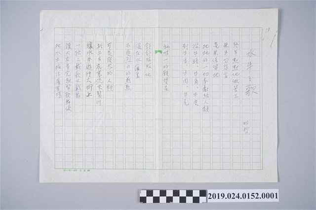 2019.024.0152.0001 柯旗化詩作〈水牛之歌〉手稿