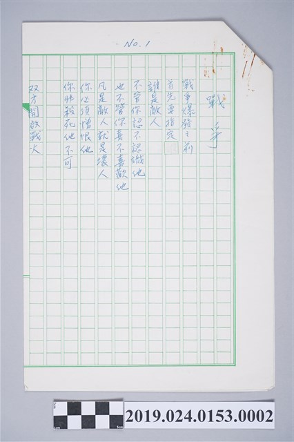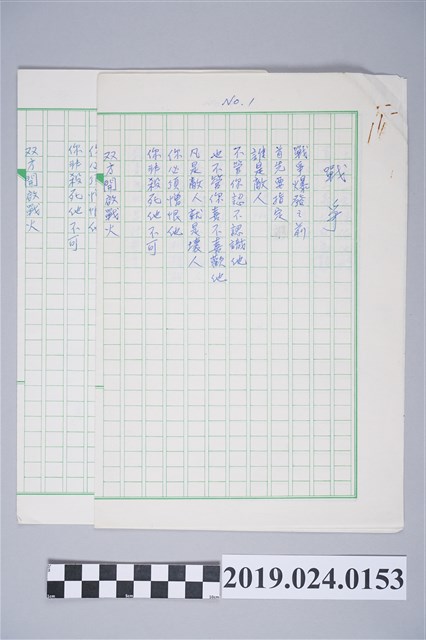 2019.024.0153.0002 柯旗化詩作〈戰爭〉複寫稿