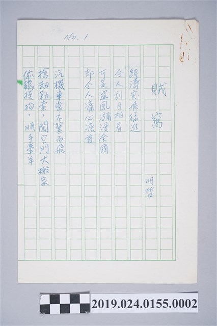 2019.024.0155.0002 柯旗化詩作〈賊窩〉複寫稿