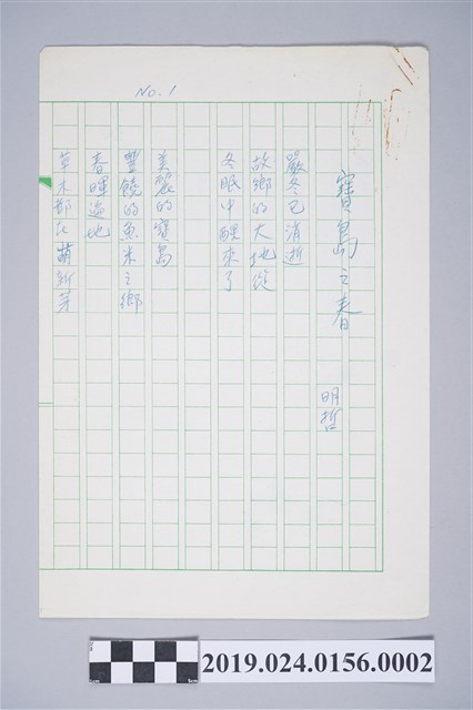 2019.024.0156.0002 柯旗化詩作〈寶島之春〉複寫稿