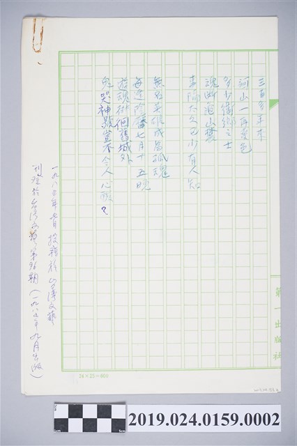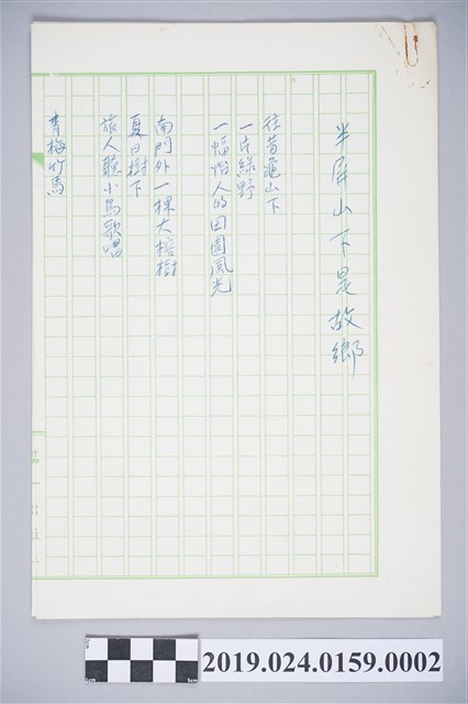 2019.024.0159.0002 柯旗化詩作〈半屏山下是故鄉〉複寫稿