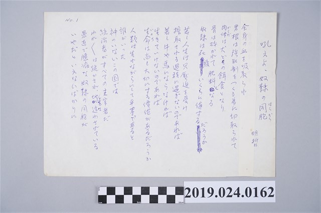 2019.024.0162 柯旗化詩作〈吼吧,奴隸的同胞〉日文手稿
