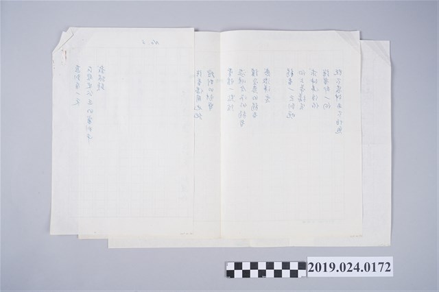 1.柯旗化中文詩作〈強者與弱者〉手稿,稿紙反向對摺後用迴紋針別起,可像書一樣翻閱,中文詩作手稿寫於稿紙上。筆名(明哲),並註記第一出版社住址和本名柯旗化,全詩長3張稿紙5頁,詩中作者細心進行刪改與補充。 2.柯旗化於1982年完成最後一本英文教科書後,便一心轉向投入宣揚台灣意識的文化事業,包括編寫《台灣文化圖書目錄》與創辦《台灣文化》季刊之外,也積極撰寫詩作、社論投稿到台、日等報章雜誌,多數投稿在《台灣文藝》雜誌雙月刊、《笠》詩刊、《民眾日報》天聲人語專欄等等,此時期的柯旗化企圖跳脫白色恐怖冤獄的陰影,反而更無畏、積極地為自己的政治理念發聲,另外,柯旗化從創作詩開始便有將其作品轉譯成台語、日語、英語的習慣,於文章的寫作也是如此,因此可以發現因為語言版本的關係也有一稿多投得情況。本捐贈案文物囊括柯旗化生前最完整的親筆手稿(複寫稿),十分珍貴,其中又以未刊登或未註明投稿的手稿為最多,共收藏有146件(包含複寫稿)、其次是柯旗化投稿於《台灣文藝》季刊的作品42件,以及《民眾日報》天聲人語專欄刊登的社論32件,其餘數件刊登於《笠》詩刊、《台灣詩季刊》、《文學界》等等。