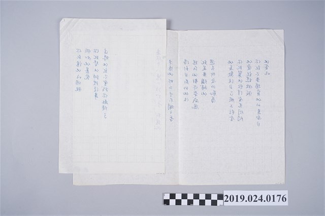 1.柯旗化中文詩作〈體貼〉手稿,寫在稿紙上,筆名(明哲),並註記第一出版社住址和本名柯旗化,全詩長2張3頁。2.柯旗化於1982年完成最後一本英文教科書後,便一心轉向投入宣揚台灣意識的文化事業,包括編寫《台灣文化圖書目錄》與創辦《台灣文化》季刊之外,也積極撰寫詩作、社論投稿到台、日等報章雜誌,多數投稿在《台灣文藝》雜誌雙月刊、《笠》詩刊、《民眾日報》天聲人語專欄等等,此時期的柯旗化企圖跳脫白色恐怖冤獄的陰影,反而更無畏、積極地為自己的政治理念發聲,另外,柯旗化從創作詩開始便有將其作品轉譯成台語、日語、英語的習慣,於文章的寫作也是如此,因此可以發現因為語言版本的關係也有一稿多投得情況。本捐贈案文物囊括柯旗化生前最完整的親筆手稿(複寫稿),十分珍貴,其中又以未刊登或未註明投稿的手稿為最多,共收藏有146件(包含複寫稿)、其次是柯旗化投稿於《台灣文藝》季刊的作品42件,以及《民眾日報》天聲人語專欄刊登的社論32件,其餘數件刊登於《笠》詩刊、《台灣詩季刊》、《文學界》等等。