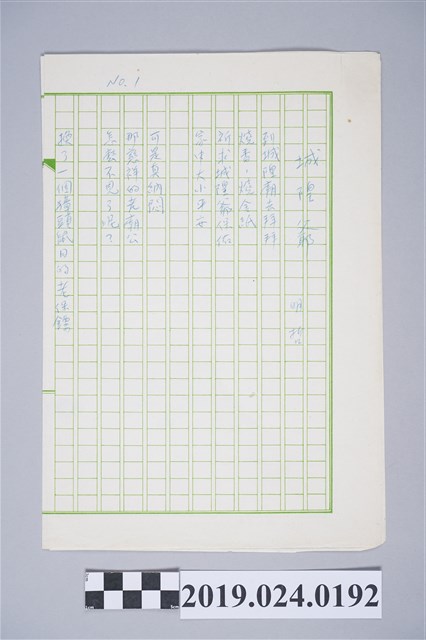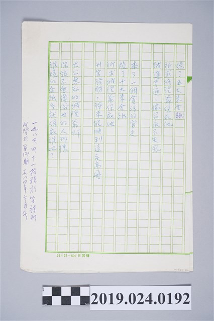 2019.024.0192 柯旗化詩作〈城隍爺〉複寫稿