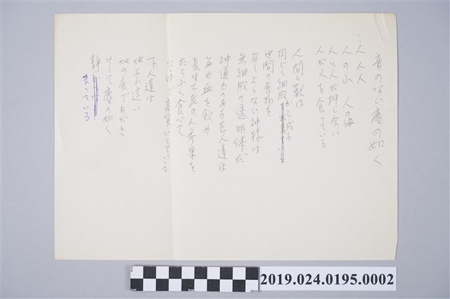 2019.024.0195.0002 柯旗化詩作〈無聲無息的塵埃〉日文草稿