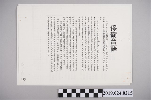 2019.024.0215 柯旗化文章〈保衛台語〉印刷文章