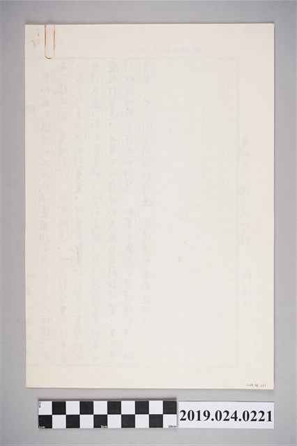 1.柯旗化中文文章〈醜陋的散沙〉手稿,內容痛斥台灣社會的的不良狀況,「天聲人語」為民眾日報的專欄名稱,文末註明本名柯旗化、第一出版社住址,以及發文日期1990年2月16日,共計三張半張稿紙。2.柯旗化於1982年完成最後一本英文教科書後,便一心轉向投入宣揚台灣意識的文化事業,包括編寫《台灣文化圖書目錄》與創辦《台灣文化》季刊之外,也積極撰寫詩作、社論投稿到台、日等報章雜誌,多數投稿在《台灣文藝》雜誌雙月刊、《笠》詩刊、《民眾日報》天聲人語專欄等等,此時期的柯旗化企圖跳脫白色恐怖冤獄的陰影,反而更無畏、積極地為自己的政治理念發聲,另外,柯旗化從創作詩開始便有將其作品轉譯成台語、日語、英語的習慣,於文章的寫作也是如此,因此可以發現因為語言版本的關係也有一稿多投得情況。本捐贈案文物囊括柯旗化生前最完整的親筆手稿(複寫稿),十分珍貴,其中又以未刊登或未註明投稿的手稿為最多,共收藏有146件(包含複寫稿)、其次是柯旗化投稿於《台灣文藝》季刊的作品42件,以及《民眾日報》天聲人語專欄刊登的社論32件,其餘數件刊登於《笠》詩刊、《台灣詩季刊》、《文學界》等等。