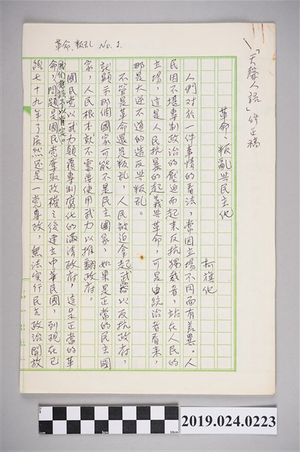 2019.024.0223 柯旗化文章〈革命、叛亂與民主化〉手稿