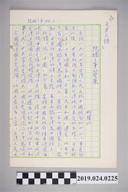 2019.024.0225 柯旗化文章〈統獨之爭的背景〉手稿