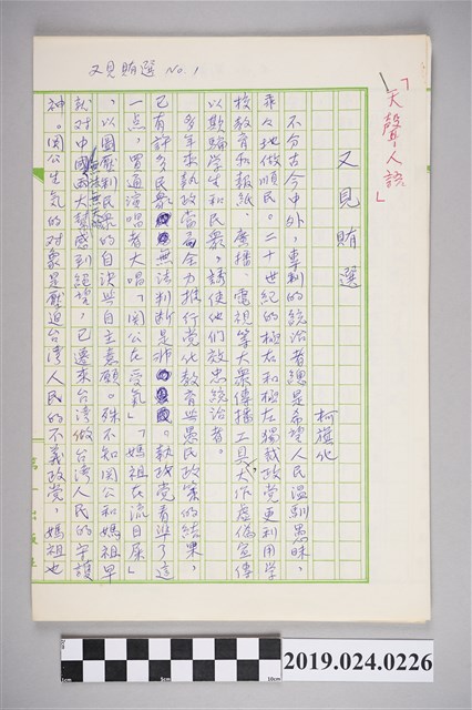 2019.024.0226 柯旗化文章〈又見賄選〉手稿