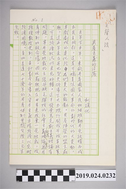 2019.024.0232 柯旗化文章〈共產主義的沒落〉手稿
