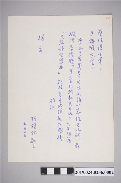 2019.024.0236.0002 柯旗化文章〈大統領狂想曲〉手稿稿件標題更動
