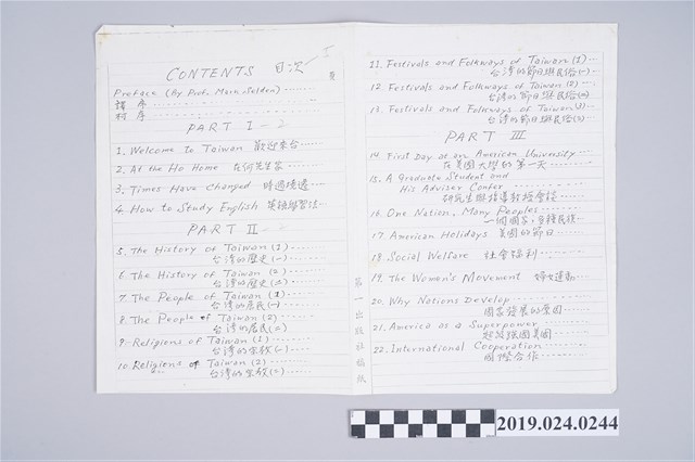 2019.024.0244 柯旗化《高級活用英語會話》目次手稿影印本