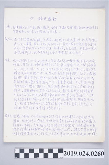 2019.024.0260 柯旗化《高級活用英語會話》中文內文定稿-第19節〈婦女運動〉
