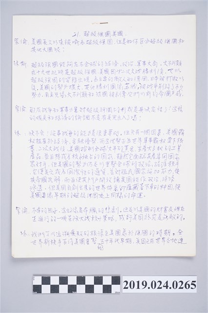 2019.024.0265 柯旗化《高級活用英語會話》中文內文定稿-第21節〈超級強國美國〉