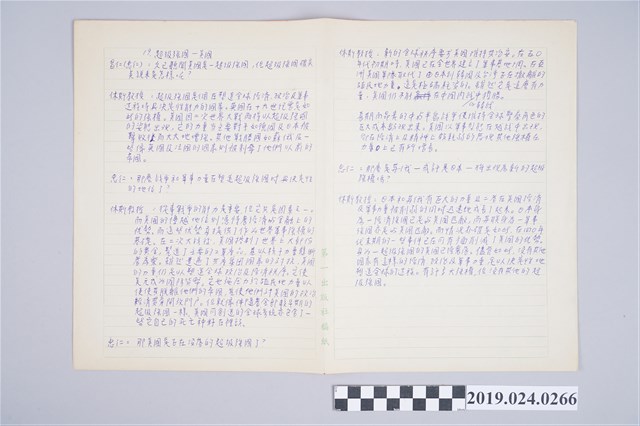 2019.024.0266 柯旗化《高級活用英語會話》中文內文手稿-〈超級強國美國〉