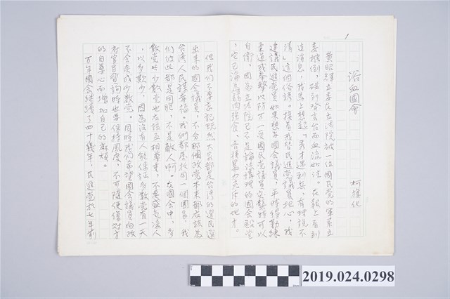 2019.024.0298 柯旗化文章〈浴血國會〉手稿
