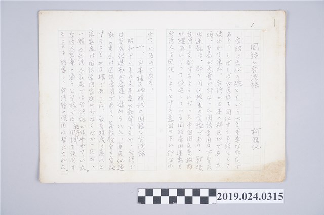 2019.024.0315 柯旗化文章〈國語和台灣語〉日文手稿