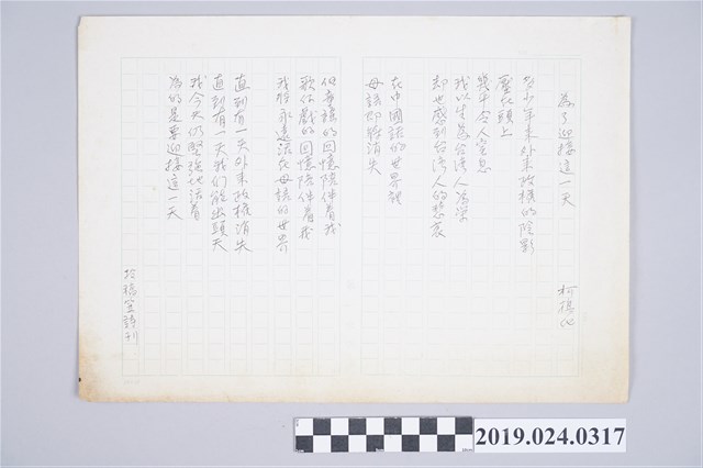 2019.024.0317 柯旗化詩作〈為了迎接這一天〉中文手稿