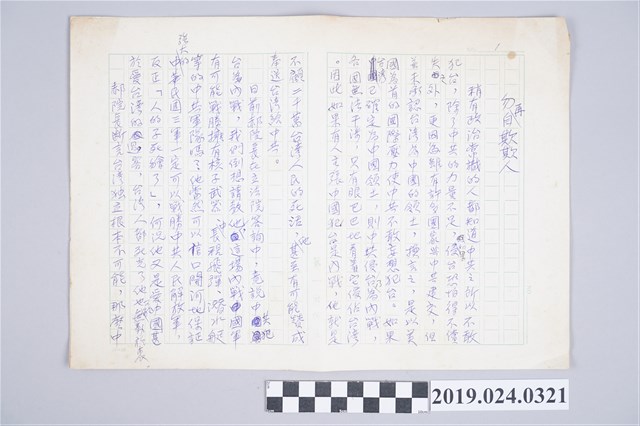 2019.024.0321 柯旗化文章〈勿再自欺欺人〉手稿