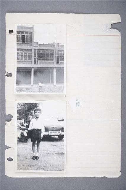 1.柯旗化獄中收到相片,柯志明在一台汽車前的個人照,穿著合唱團的團服(一年級就加入高雄市兒童合唱團),拍照地點不明。2.柯旗化在第二次入獄後,於獄中合作社買了活頁筆記本代替相簿,筆記本用黑線穿好,封面寫上”Album”字樣,將入獄期間家人寄來的相片全部浮貼或夾在相簿裡,共有142張相片,部分相片柯蔡阿李也在其背面寫下貼心註記。在照相機還不普及的五十年前,柯旗化的妻子柯蔡阿李便用照片用心的記錄家庭生活給獄中不見天日的柯旗化,也讓兒女透過相片,對鏡頭另一端的缺席的父親有了想像。