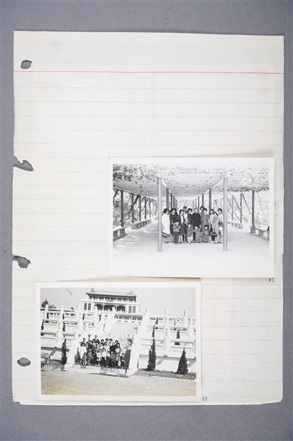 1.柯旗化獄中收到相片,相片背面柯蔡阿李寫道:「大貝湖眾樂館(明兒入特選的就是畫此地)」2.柯旗化在第二次入獄後,於獄中合作社買了活頁筆記本代替相簿,筆記本用黑線穿好,封面寫上”Album”字樣,將入獄期間家人寄來的相片全部浮貼或夾在相簿裡,共有142張相片,部分相片柯蔡阿李也在其背面寫下貼心註記。在照相機還不普及的五十年前,柯旗化的妻子柯蔡阿李便用照片用心的記錄家庭生活給獄中不見天日的柯旗化,也讓兒女透過相片,對鏡頭另一端的缺席的父親有了想像。