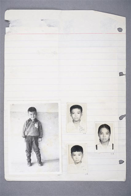 1.柯旗化獄中收到相片,柯潔芳大頭照並註明「59年」2.柯旗化在第二次入獄後,於獄中合作社買了活頁筆記本代替相簿,筆記本用黑線穿好,封面寫上”Album”字樣,將入獄期間家人寄來的相片全部浮貼或夾在相簿裡,共有142張相片,部分相片柯蔡阿李也在其背面寫下貼心註記。在照相機還不普及的五十年前,柯旗化的妻子柯蔡阿李便用照片用心的記錄家庭生活給獄中不見天日的柯旗化,也讓兒女透過相片,對鏡頭另一端的缺席的父親有了想像。