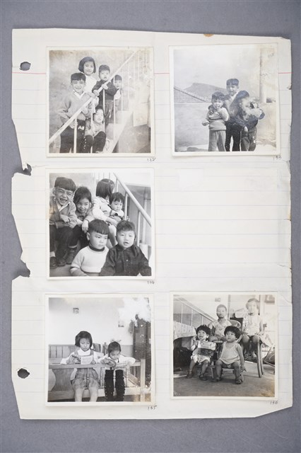 1.柯旗化獄中收到相片,左起:柯志哲、柯志明、柯志鴻(姪子),背景是龜山?半屏山?。柯蔡阿李於相片背面寫道:「在左營三樓上 1964.1.13」柯志哲吃的應該是香菸糖。2.柯旗化在第二次入獄後,於獄中合作社買了活頁筆記本代替相簿,筆記本用黑線穿好,封面寫上”Album”字樣,將入獄期間家人寄來的相片全部浮貼或夾在相簿裡,共有142張相片,部分相片柯蔡阿李也在其背面寫下貼心註記。在照相機還不普及的五十年前,柯旗化的妻子柯蔡阿李便用照片用心的記錄家庭生活給獄中不見天日的柯旗化,也讓兒女透過相片,對鏡頭另一端的缺席的父親有了想像。