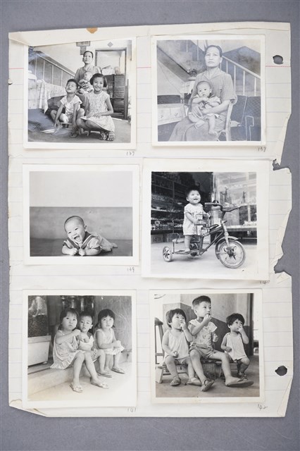 1.柯旗化獄中收到相片,柯旗化的姪女?於左營家中。2.柯旗化在第二次入獄後,於獄中合作社買了活頁筆記本代替相簿,筆記本用黑線穿好,封面寫上”Album”字樣,將入獄期間家人寄來的相片全部浮貼或夾在相簿裡,共有142張相片,部分相片柯蔡阿李也在其背面寫下貼心註記。在照相機還不普及的五十年前,柯旗化的妻子柯蔡阿李便用照片用心的記錄家庭生活給獄中不見天日的柯旗化,也讓兒女透過相片,對鏡頭另一端的缺席的父親有了想像。