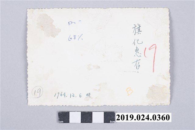 1.柯旗化獄中收到相片,妻柯蔡阿李與三名子女之合照,左起次子柯志哲、妻柯蔡阿李、柯潔芳、柯志明。柯蔡阿李在背面寫道:「旗化惠存 1964.12.6 照」2.柯旗化在第二次入獄後,於獄中合作社買了活頁筆記本代替相簿,筆記本用黑線穿好,封面寫上”Album”字樣,將入獄期間家人寄來的相片全部浮貼或夾在相簿裡,此相片背部有被撕落的殘膠,原先夾於相簿中但目前已離開相簿另外存放,此類脫簿的照片共有46張 ,部分相片柯蔡阿李也在其背面寫下貼心註記。在照相機還不普及的五十年前,柯旗化的妻子柯蔡阿李便用照片用心的記錄家庭生活給獄中不見天日的柯旗化,也讓兒女透過相片,對鏡頭另一端的缺席的父親有了想像。