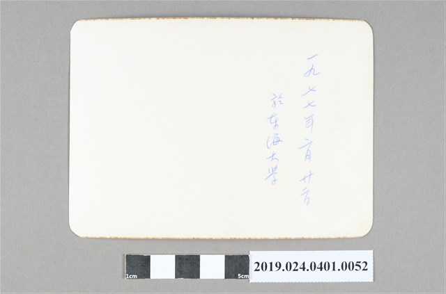 柯旗化1977年2月22日攝,家人於東海大學的照片。(左起)柯蔡阿李、柯潔芳、柯志明在車內準備吃蛋糕。相片背面柯旗化寫道:「一九七七年二月廿二日 於東海大學」彩色照片。