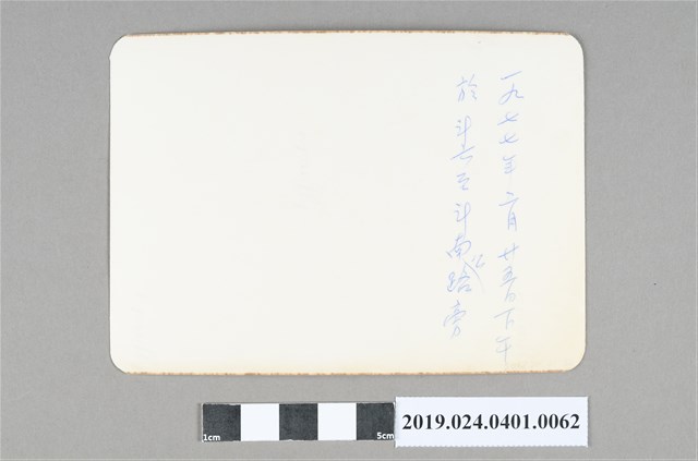 柯旗化1997年2月25日攝,妻子於斗六至斗南公路旁的個人照,背景是自家福特車,公路旁的樹木是木麻黃。相片背面柯旗化寫道:「一九九七年二月廿五日下午 於斗六至斗南公路旁」雖說有稍微遊覽,但不願浪費時間遊玩的柯旗化仍趕著回家工作。彩色照片。
