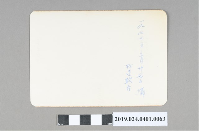 柯旗化1997年2月27日個人照,於出版社三樓書櫃前。相片背面柯旗化寫道:「一九七七年二月廿七日 攝 柯達軟片」彩色照片。