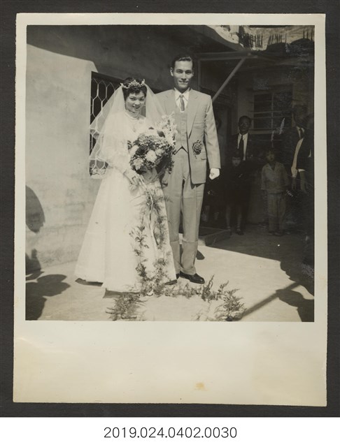 柯旗化1955年結婚當天,新婚合照,攝於新房前。