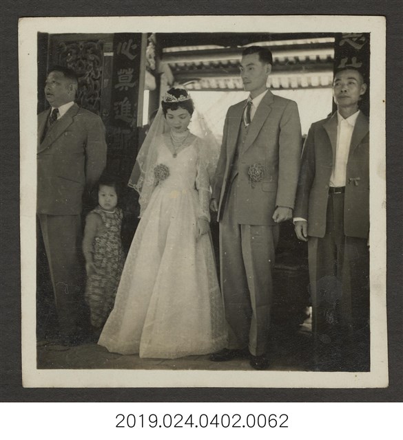 柯旗化1955年結婚當天,新人在台上聆聽致詞,右一為柯旗化的父親柯松木。