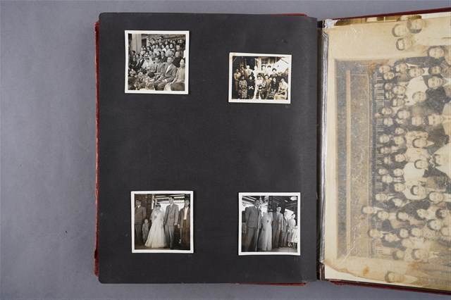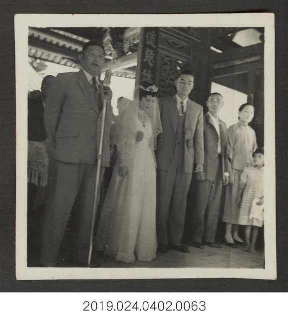 柯旗化1955年結婚當天,新人在台上聆聽致詞,右一右二(成人)為柯旗化母親盧美和父親柯松木。