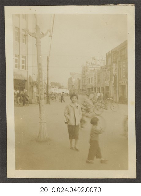 柯旗化1955年12月13日蜜月旅行,柯蔡阿李於台北街上留影。曾就讀師範大學的柯旗化,帶著柯蔡阿李在台北四處遊覽。地點不明。(柯旗化攝)