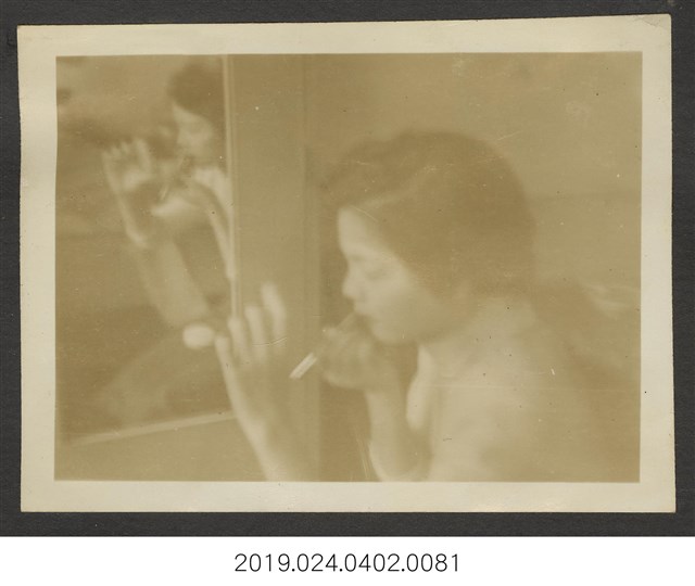 柯旗化1955年12月13日蜜月旅行,柯蔡阿李於台北,正在化妝。地點不明。(柯旗化攝)