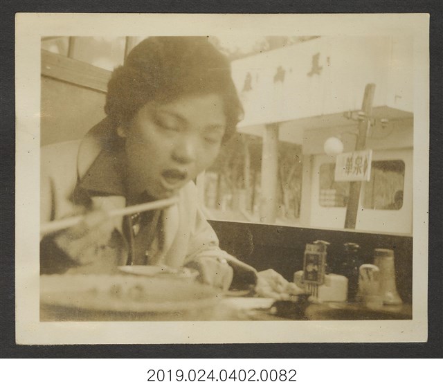 柯旗化1955年12月13日蜜月旅行,柯蔡阿李於台北,正在吃飯。地點不明。(柯旗化攝)