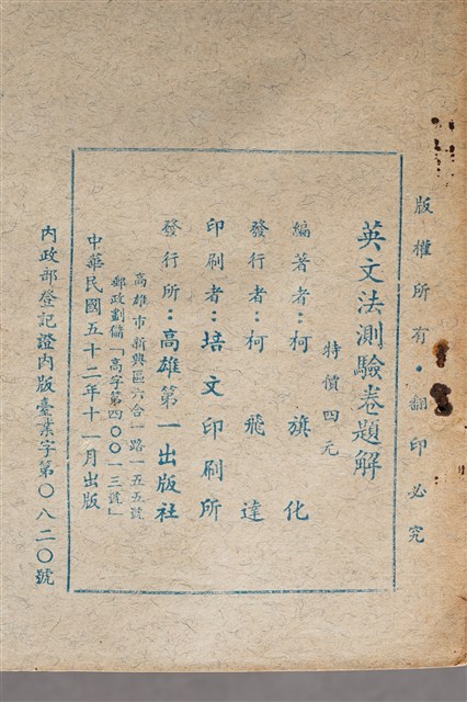 2019.024.0483 柯旗化編著《英文測驗卷題解》