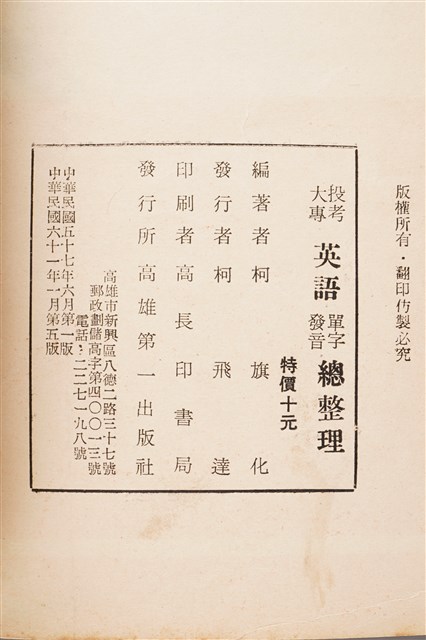2019.024.0521 柯旗化編著《短期速成投考大專英語單字發音總整理》