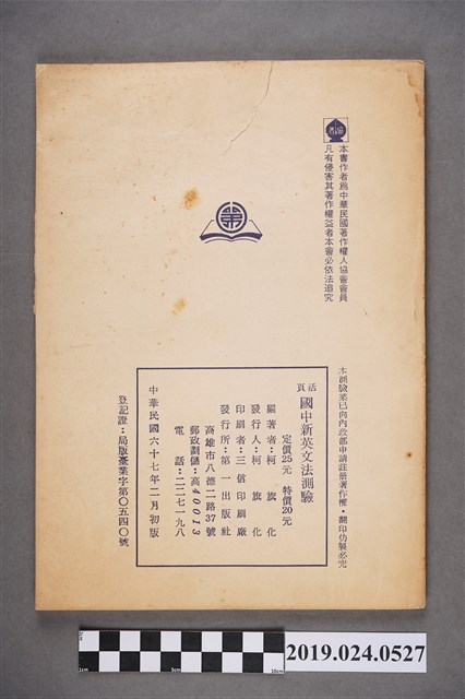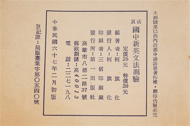 2019.024.0527 柯旗化編著《國中英語總複習用:活頁國中新英文法測驗》