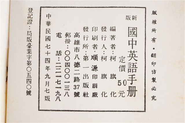 2019.024.0530 柯旗化編著《新版國中英語手冊》