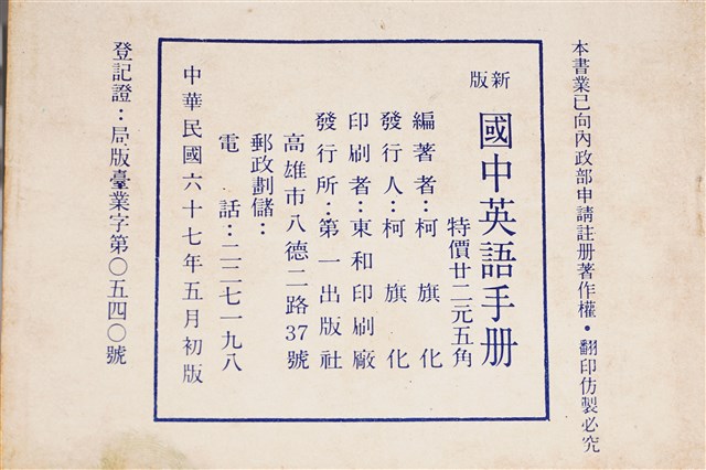 2019.024.0531 柯旗化編著《新版國中英語手冊》