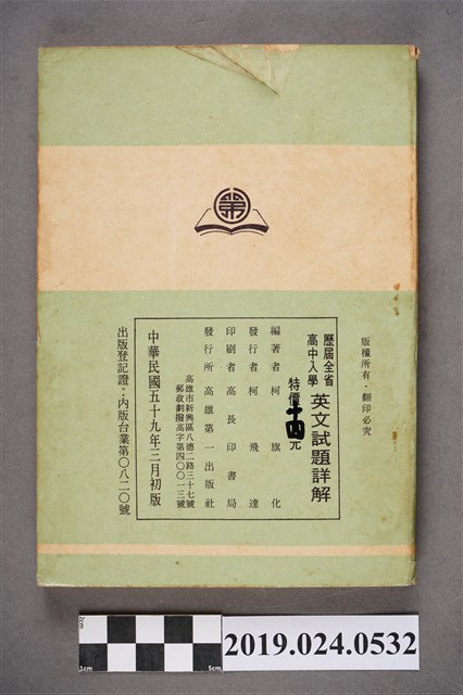 2019.024.0532 柯旗化編著《全省歷屆高中入學英文試題詳解(54~58年)》